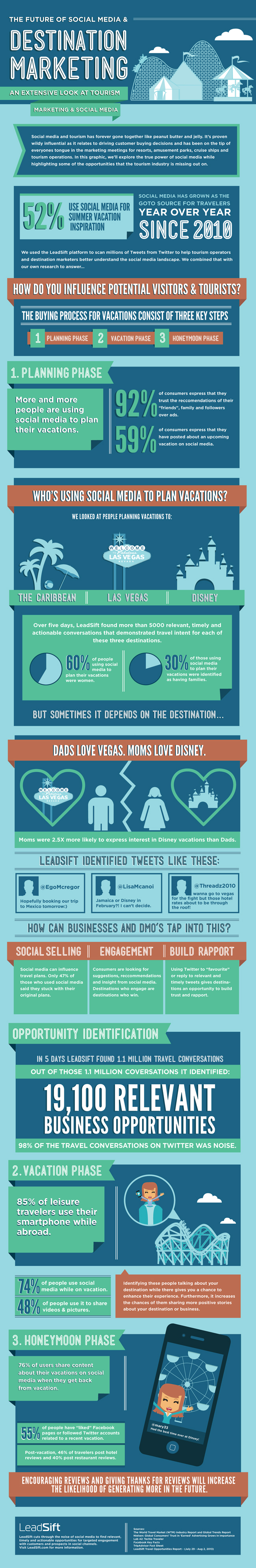 Consider the graphic to the right created by LeadSift. They have identified that leisure travelers are increasingly using social media during the three phases of their trip: Planning (before), Vacation (during) and Honeymoon (after) – a reflection of the statement that 92% of said travelers trust recommendations of social/family connections over advertising.